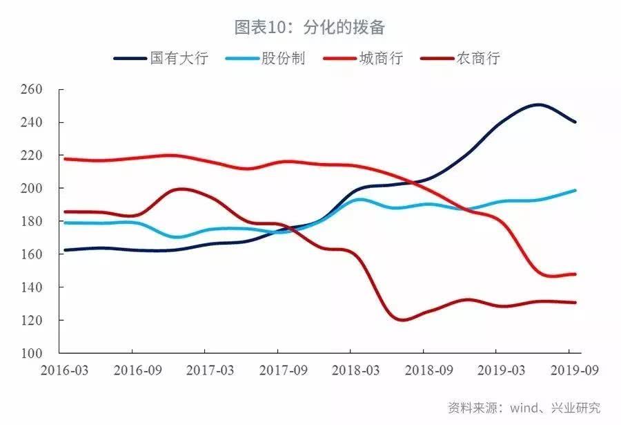 资产质量方面,国股的不良率控制的较好,处于【1.3%,1.7%】的较低水平,拨备也相对厚实,两者均好于行业平均。城商行最新不良率2.48%,且今年以来上行速度加快;农商行最新不良率4%,历史包袱正在逐步减轻。城农商行拨备在【130%,150%】的达标下限。未来消化存量不良的空间有限。