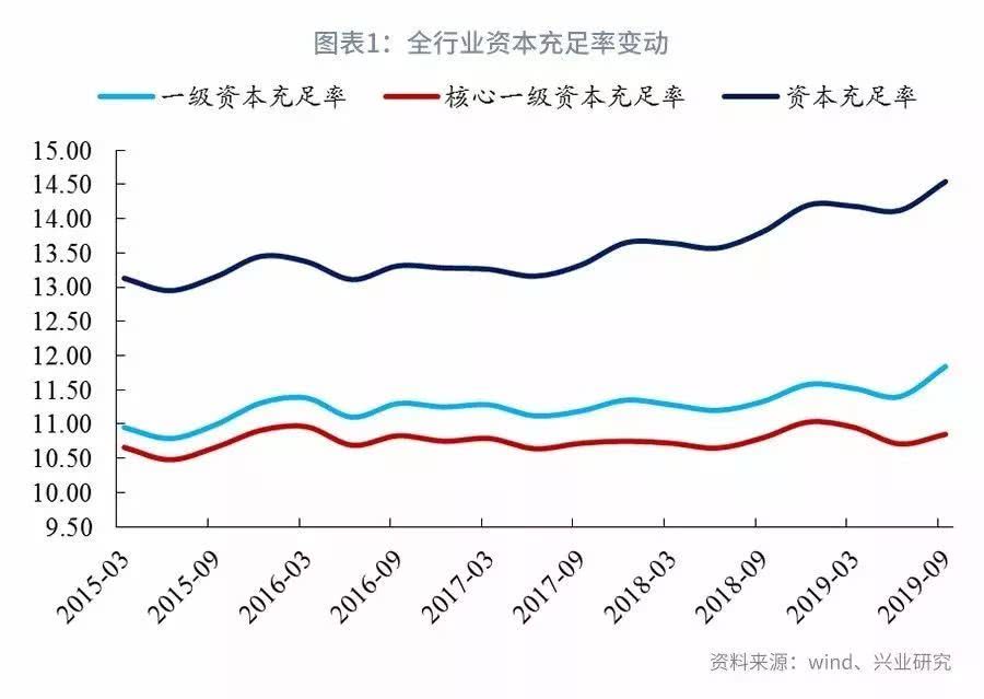根据银保监会最新披露的数据,截至2019年3季度末,全行业核心一级、一级、全口径资本充足率分别为10.85%,11.84%和14.54%,较2018年年末变动分别为-18BP,26BP,34BP。