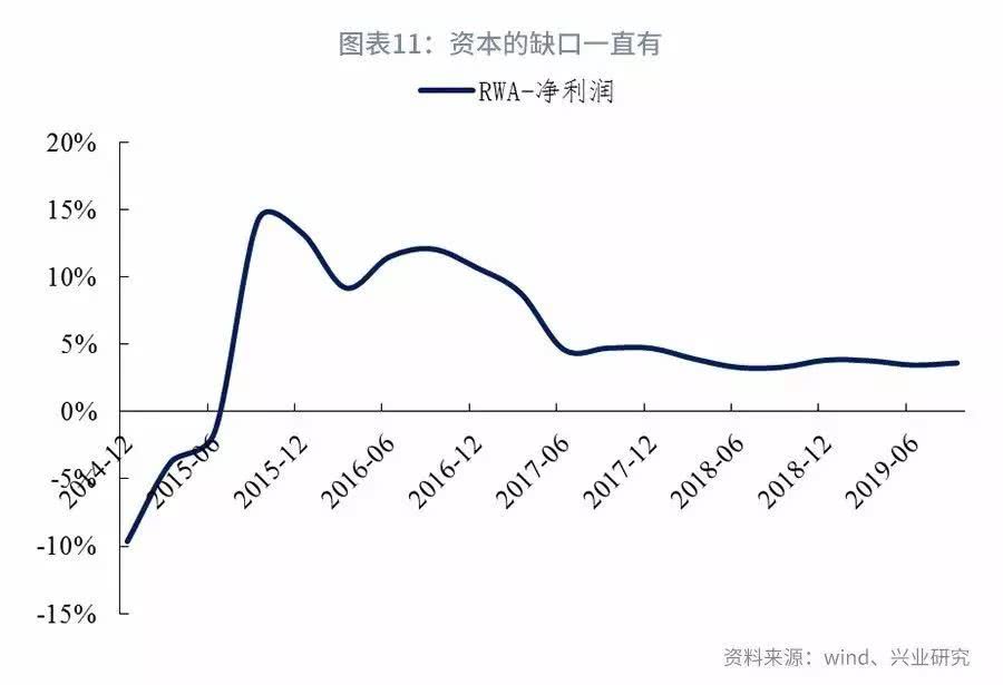 2)资本内生:利润增速跟不上风险资产增速,内源生成有缺口;