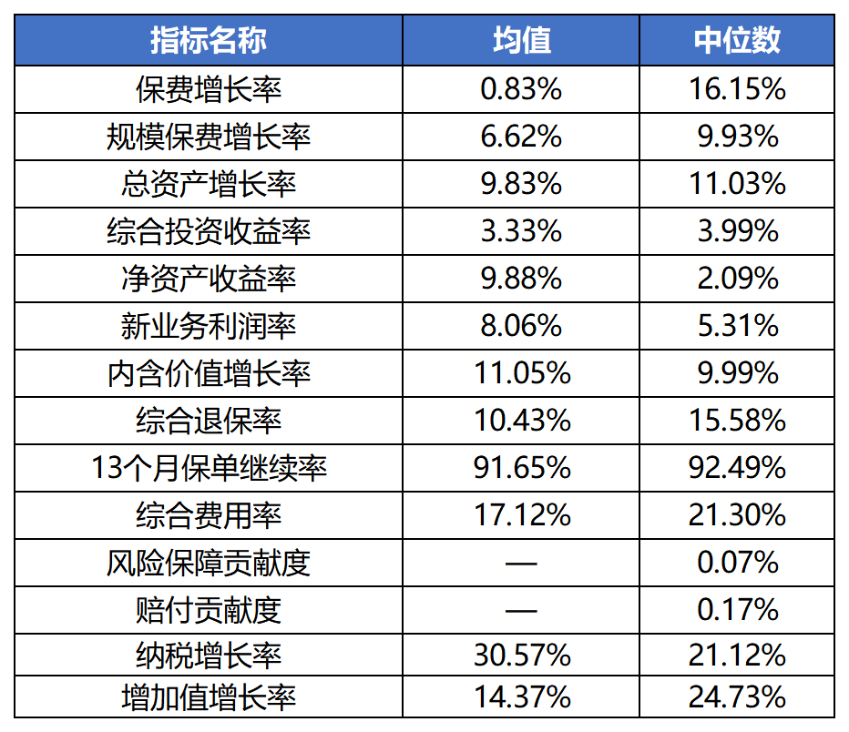 评价内容包括速度规模、效益质量、社会贡献三个方面,财产险公司评价指标体系由保费增长率、综合成本率、风险保障贡献度等12项指标构成;人身险公司评价指标体系由保费增长率、综合投资收益率、风险保障贡献度等14项指标构成。