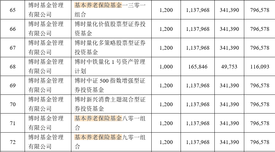 “基本养老保险基金”这一关键词出现19次,获配的基金组合分别由博时基金、大成基金、广发基金、华泰资管、汇添富基金、嘉实基金、南方基金、易方达基金、银华基金、招商基金、中国人保资管等机构管理,均获配1137968股。