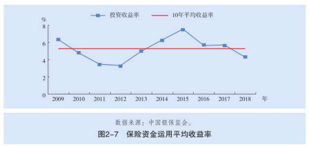 其中,债券、股票和证券投资基金、其他投资(主要是另类投资)占比下降,银行存款投资占比有所上升主要受2018年股票市场下跌等因素影响,保险投资收益降至6 859亿元,同比下降17.88%;平均投资收益率4.33%,同比下降1.44个百分点。随着债券投资的预期收益率下行,保险资金面临再投资风险和新增资金配置难问题。