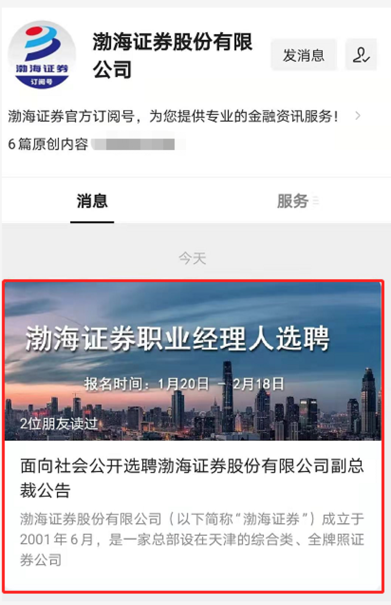 财联社(北京,记者高云)讯,距离“公开招聘高管任职不足两年即辞职”消息曝光仅过去两天,渤海证券又开始了公开招聘副总裁。