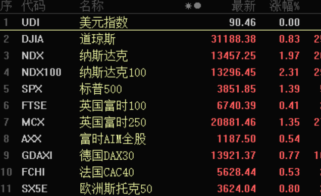 市场憧憬拜登能够扩大政府支出,提振经济增长。美股高开高走,三大股指齐创历史新高,纳指涨1.97%,标普500指数涨1.39%,道指涨0.83%。美股大型科技股全线上涨,奈飞涨近17%,谷歌涨超5%,纷纷创历史新高,微软、苹果均涨超3%。