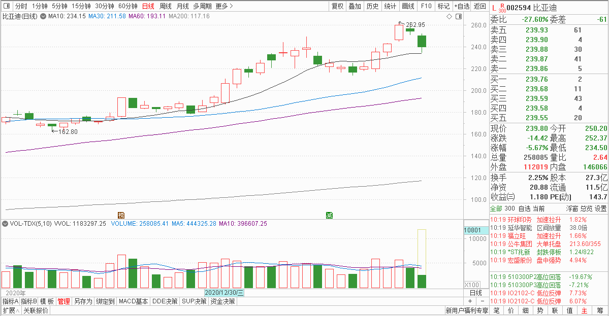 1月26日晚间,比亚迪公告称,公司近日收到股东、高级管理人员李柯的告知函,其以个人资金需求为由,计划减持公司A股股份不超过100万股。按照1月26日比亚迪收盘价每股254.22元计算,李柯此次减持或将套现不超过约2.54亿元。