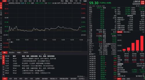 基金四季报显示,上海机场是被59只基金持仓、持仓占比4.47%的基金重仓股。然而随着业绩预报的披露,上海机场股价迎来“断崖式”下跌。在经历连续两日一字跌停后,2月3日,“千亿白马”上海机场跌7.33%,报收59.30元。