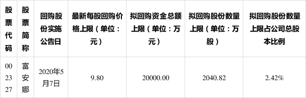 此前,富安娜曾于2020年5月7日披露,计划于2020年4月23日至2021年4月23日前回购2040.82万股公司股份。