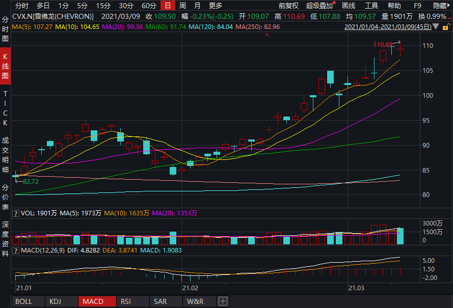 根据伯克希尔提交给美国证券交易委员会(SEC)的13F文件,2020年第四季度伯克希尔开始建仓雪佛龙,到去年年底持仓股数已突破4800万股,直接成为第九大重仓股,持仓市值超40亿美元。