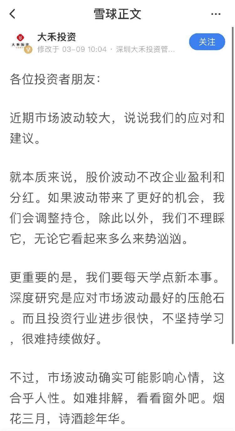 市场波动确实可能影响心情,这合乎人性。如难排解,看看窗外吧。烟花三月,诗酒趁年华。
