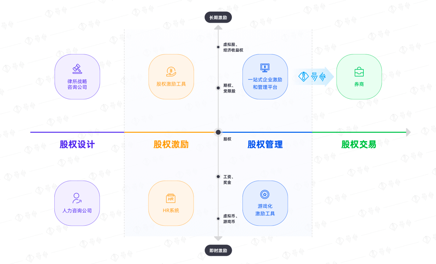 易参的思路并不仅在于做一个股权激励工具,而是提供围绕股权全生命周期的员工收益解决方案。不仅让员工对股权的价值和自己的收益产生认知,还可以围绕多种业务场景,比如针对空降高管、现有核心骨干、中层等不同身份的员工,为公司设计复合权益激励体系,让员工真正被“激励”,帮助公司建立更踏实的组织结构,从而为公司的持续增长打下基础。