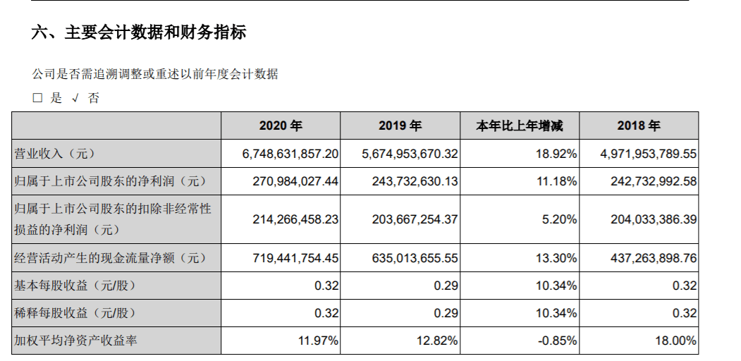 年报显示,2020年,新乳业液体乳及乳制品制造业销售量达到72.3万吨,比上年同期的59.34万吨增长了21.84%。这一增速同比也增长了14.6个百分点。2020年新乳业实现营收67.49亿元,较上年同期增长18.92%;实现归母净利润2.71亿元,较上年同期增长11.18%。
