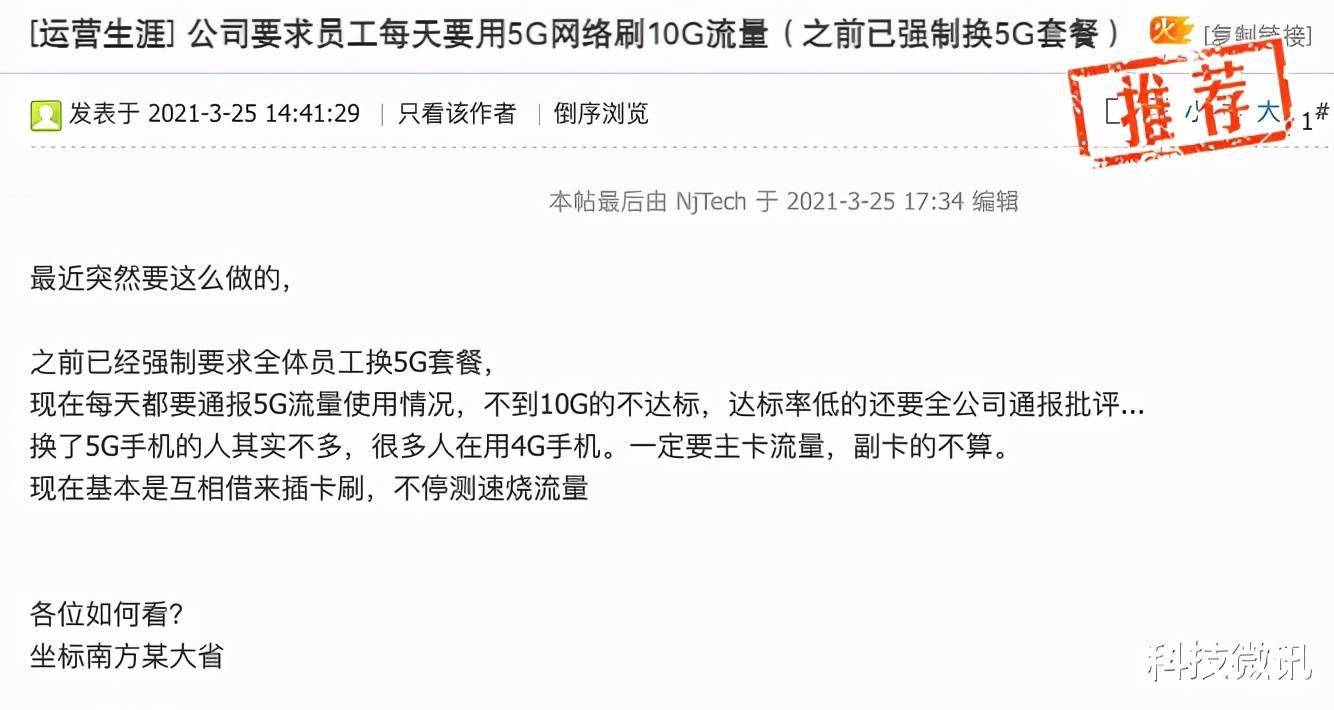 运营商在推进 5G 业务时表现得非常积极,相信很多用户接到过运营商打来的 5G 推销电话,甚至有些地方要求员工每天刷 10GB 5G 流量,不达标还可能会被批评。