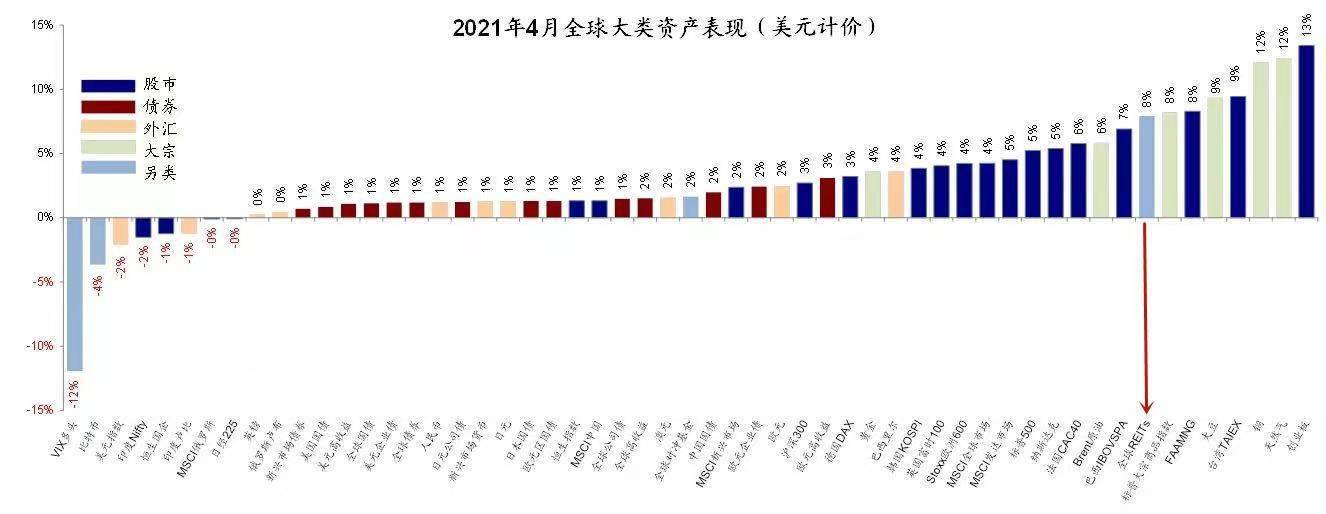 与此同时,REITs在通胀环境下的表现令人瞩目,4月美股市场REITs单月上涨8%,跑赢了标普500与纳斯达克指数5%的涨幅,并肩标普大宗商品指数。
