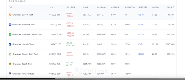 OKlink显示,灰度持仓65.29万枚比特币,估计成本为89.31亿美元。也就是说,灰度持有一枚比特币的平均成本仅约1.37万美元。