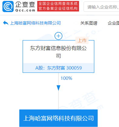 企查查APP显示,5月19日,上海哈富网络科技有限公司成立,法定代表人为郑立坤,注册资本5000万元人民币,经营范围包含:信息技术咨询服务;广告制作;广告设计、代理;广告发布等。企查查股权穿透显示,该公司由东方财富(300059)100%控股。