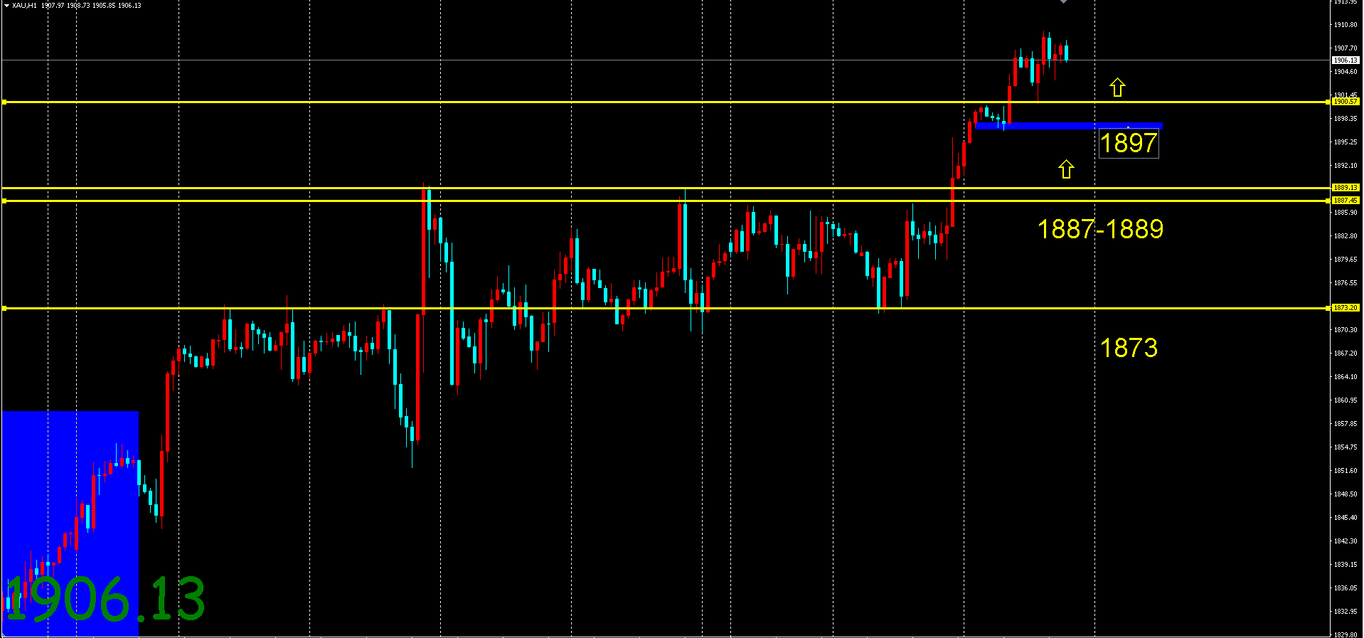 小时图看,下方支撑在1897-1900区间,进一步在1890,美盘保持低多思路。