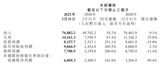 刚刚,小米发布了2021Q1财报。 在第一季度,小米总营收为769亿元,同比增长54.7%,环比增长9.1%。其中经调整净利润为61亿元,同比增长163.8%,环比增长89.4%。相比较去年,今年一季度的小米,交了一份超过市场预期的答卷。