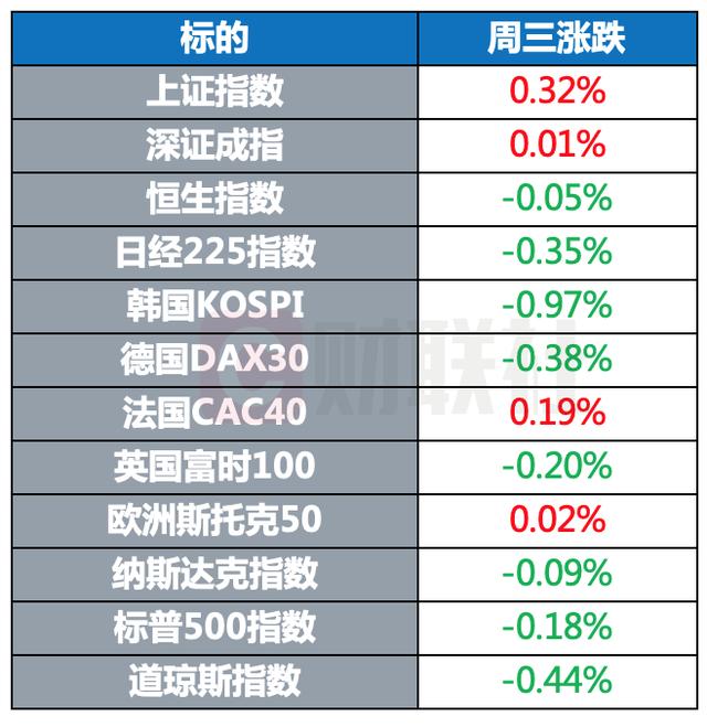 周三全球股市多数收跌,美股三大指数悉数收跌,道指三连阴的同时创下近两周新低,标普500指数一度逼近盘中历史最高位,纳指微跌0.09%。