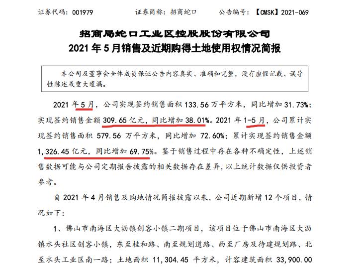 招商蛇口表示,鉴于销售过程中存在各种不确定性,上述销售数据可能与公司定期报告披露的相关数据存在差异,以上统计数据仅供投资者参考。