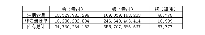 2021年6月9日COMEX金属库存