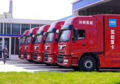 4月14日,在河北唐山海港经济开发区,工人从准备投入使用的氢燃料电池重卡前走过。 当日,河北省唐山市海港经济开发区引进的首批5辆氢燃料电池重卡在港口工业集中区投放,将用