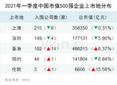 Wind最新发布2021年一季度中国上市企业市值500强榜单显示,截至3月31日,共有11家公司市值超1万亿元,数量较2020年末持平。腾讯控股、阿里巴巴、贵州茅台稳居前三位。 新进500强公司中