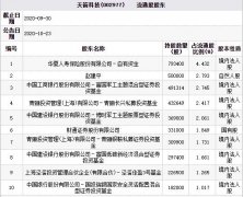 根据公告,截止2020年9月30日,华夏人寿保险股份有限公司,财通证券股份有限公司,富国基金、博时基金、国投瑞银基金旗下公募基金,青骊投资管理(上海)有限公司、上海泾溪投资管