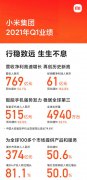 2021年5月26日,小米集团公布2021年第一季度业绩。营收利润爆发式增长,远超市场预期。总营收达人民币769亿元,同比增长54.7%;经调整净利润人民币61亿元,同比增长163.8%。手机 X AIo
