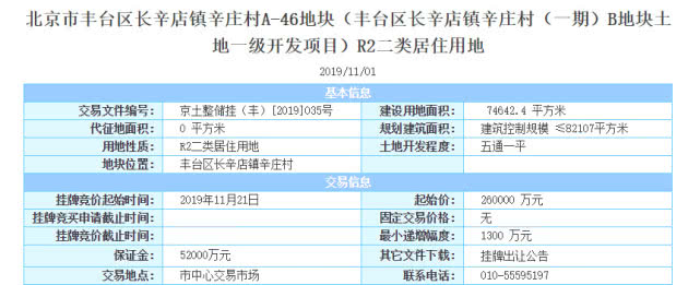 12月5日消息(董倩倩)今日,北京丰台区长辛店镇辛庄村A-46地块成功出让,最终被首开+保利联合体以26亿元的底价收入囊中,楼面价31666元/㎡,溢价率0%。