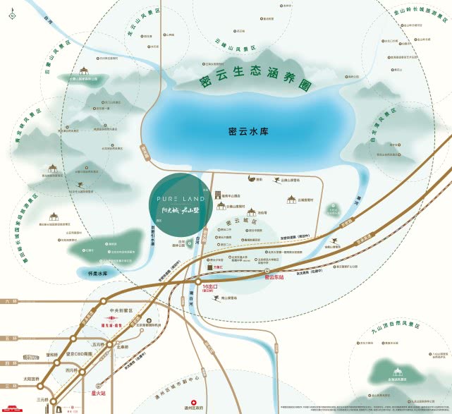 阳光城·君山墅地处密云水库风景区内,距离首都机场45KM,望京商圈58KM,国贸80KM,现有的主要交通线路有京承高速、京密路以及101国道等公路,京沈高铁(北京-密云)建成后时速可达350公里/小时,届时从密云“进城”将更为便捷。