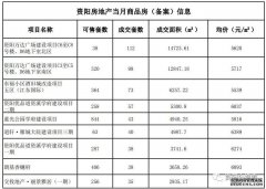 原标题:乐居快报 | 资阳房产当月销售信息、销售排行 近日 小编在资阳市房地产管理局官网获悉 资阳房地产当月商品房(备案)信息 资阳花样年花郡一期均价为6913元/m 道轩雁城大院