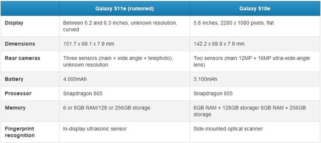 三星GalaxyS11e/10e参数对比