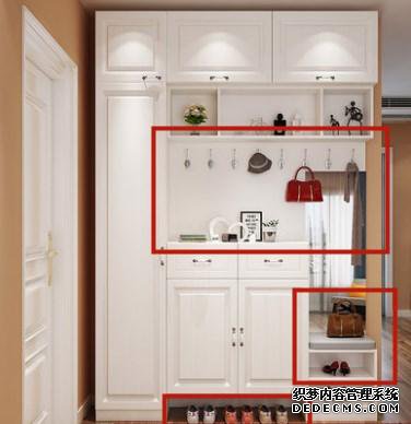 入户口开销,主要需搞定一个头顶天花板、底部有留空放常用鞋、带凳子便于换鞋的,多功能鞋柜。