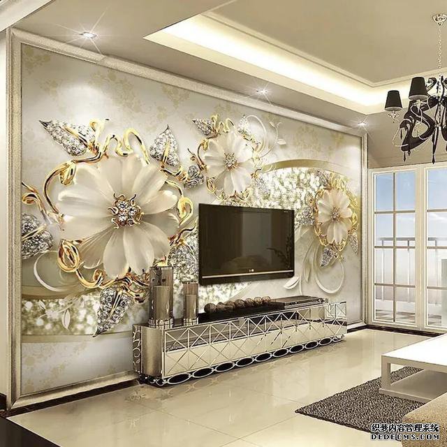 电视背景墙可以选择壁纸,这种适合装修风格欧式风,中式风,壁纸有很多样式,适合很多风格,价格也不是很贵,对于一些经济紧张的家庭来说很划算,施工简单而且快。
