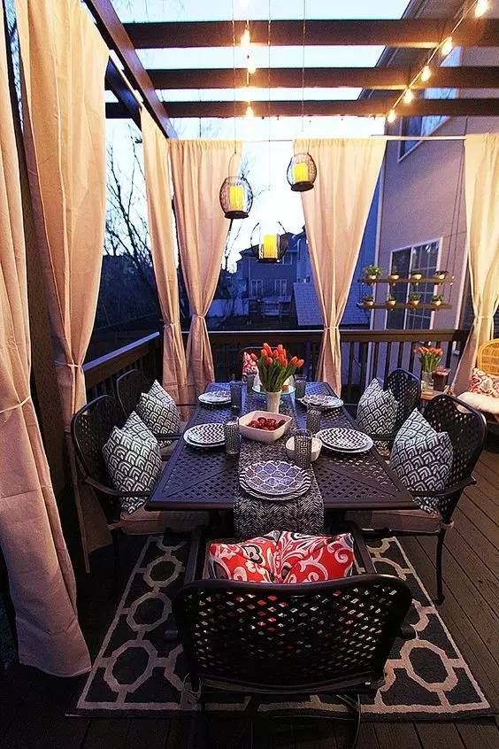 在阳台搭上桌子,配上凳子,夏天的晚上吹着凉风在阳台烛光晚餐,冬天的中午在阳台上边晒太阳边吃午饭,想想就很惬意浪漫。