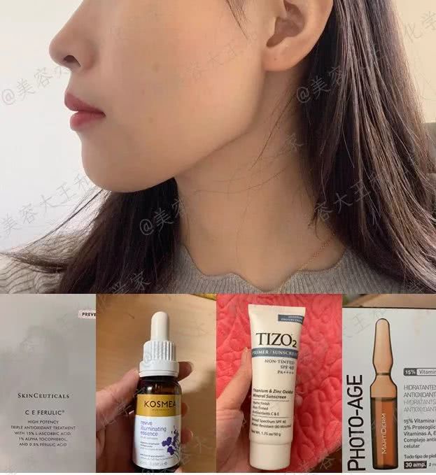 从修丽可的cef、pcf,到各类含维C的安瓶,从没间断过。“美化”有抗氧化精华油后,一直坚持在早上使用“水油水”大法;有维A精华后,也是一天不落地每晚坚持用。