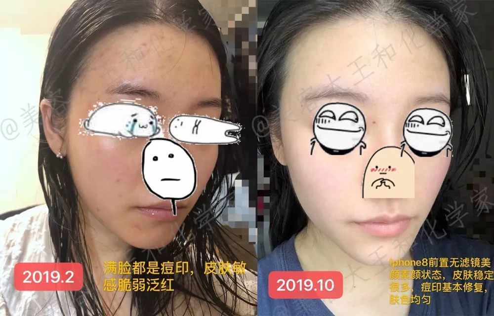 我坚持下去的动力就是听美羊羊的话,而且痘印真的太丑了,无法遮盖,只要在护肤最后一步往脸上定点按摩按摩并不需要几分钟。图片是我从最初长痘痘到现在几乎没有印子的过程,都是原图,几乎都没有化妆,化妆了也没用粉底遮盖。