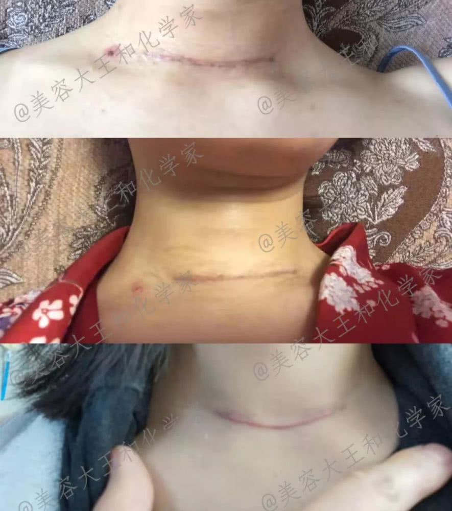 因为身体原因,我做了个甲状腺的切除术,切掉了一半的甲状腺组织。后来,病是治好了,但是给我留下了一道很严重的疤痕。我是疤痕体质,在疤痕愈合的过程中,我发现伤口出现了增生,还是在一年四季都要裸露在外的部位。我的脖子本身就比较长,又因为常年练瑜伽,颈部体态不错,所以脖子就是我的宝藏部位,但是现在却留下了疤痕,这个疤痕会跟随我一辈子......