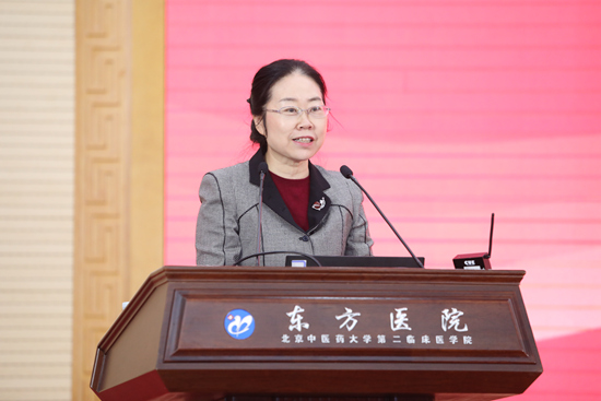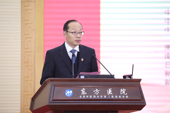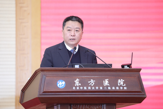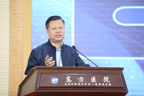 北京中医药大学东方医院院长刘金民作任务报告,总结影像东方医院20年进行进程,并对未来进行瞻望。