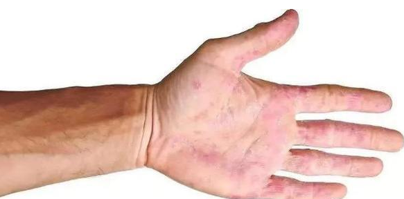 肝掌是在人的手掌中出现成片的红斑,最早往往是出现在手上的大小鱼际处,而随着肝脏病变的加深,红斑会遍布人的整片手掌,和蜘蛛痣类似,肝掌在按压的时候会变白,但是失去按压又会立马恢复原状。