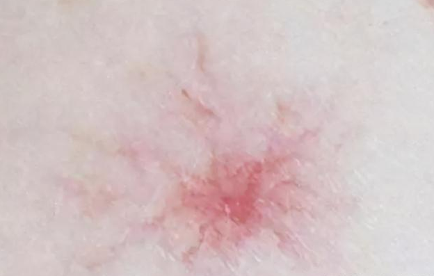 蜘蛛痣是一种在中间略微凸起,四周呈现出发散状,看起来就像是一只蜘蛛一样的红斑,多出现在人的前胸后背手臂等位置。而且在用手指按住''蜘蛛身体''的时候,它四周的''蜘蛛腿''会消失。