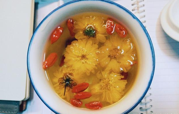 杯中放入云台冰菊,热水冲泡,适合日常饮用。