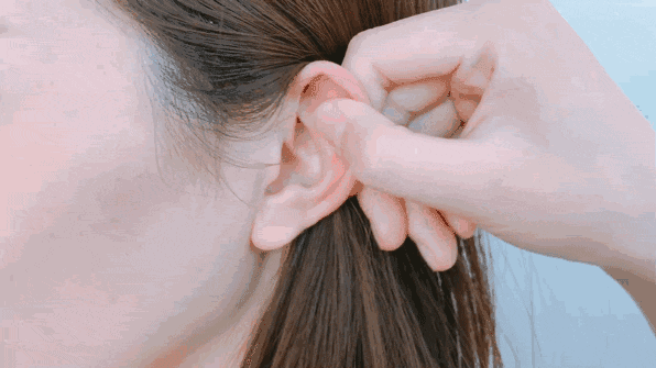 伸出双手,用食指、中指、拇指揉外耳廓,从上往下2分钟以耳部微热为宜。