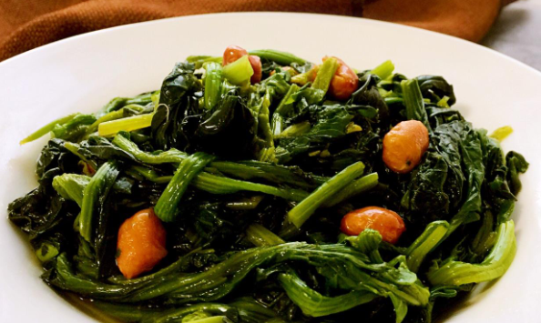 科学大熊推荐的这道养生营养家常美食是:果仁菠菜