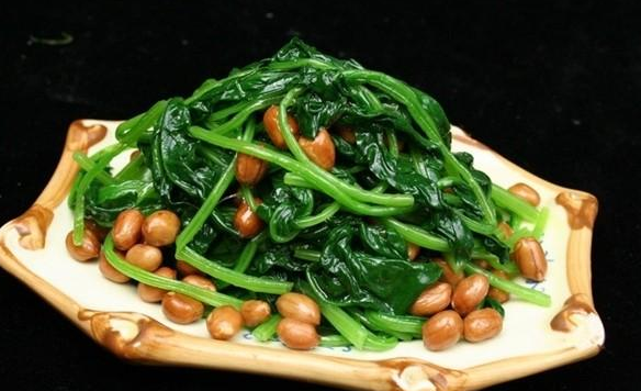 果仁菠菜中的花生中的维生素K有止血作用。花生红衣的止血作用比花生更高出50倍,对多种出血性疾病都有良好的止血功效。