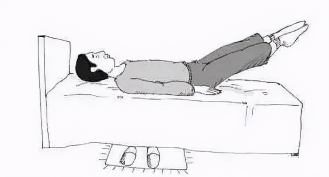 全身平躺,双腿抬高,与平面呈45度角,坚持2分钟后,观察自己的两条腿。
