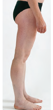 这种体态的最佳识别方法是在矢状面上进行观察。另外,从后方观察时,可以看到明显突出的小腿和腘窝区域;从前方观察时,可以看到髌骨被压向下方。从前方观察时,这些特征将更为明显。