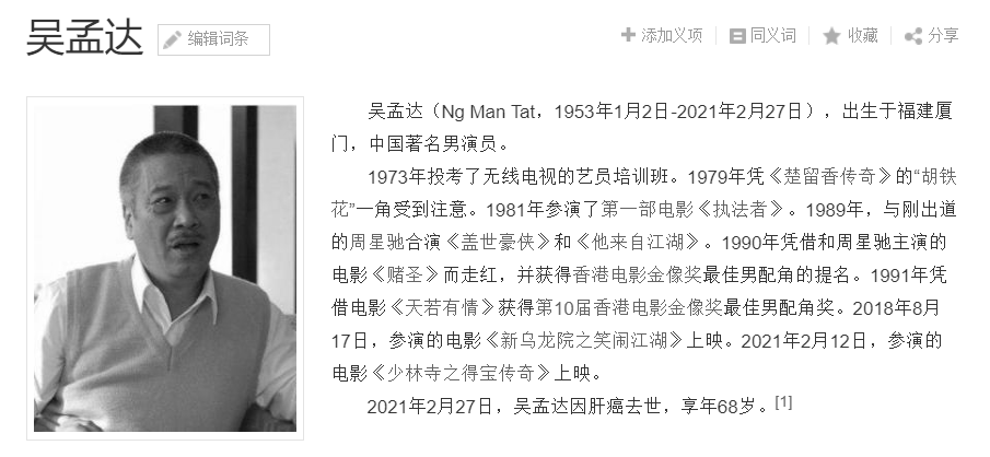 其实还是因为最近的新闻,著名的演员吴孟达发现了肝癌,这个新闻让人心里很不是滋味。