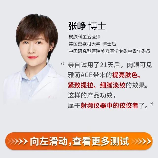 1. 以上图片及数据来源于华山医院张峥博士和日本草野太郎博士连续 28 天搭配雅萌官配凝胶使用 ACE 四环变频射频仪后的轮廓、皱纹、肤色、毛孔等肌肤变化真实效果;