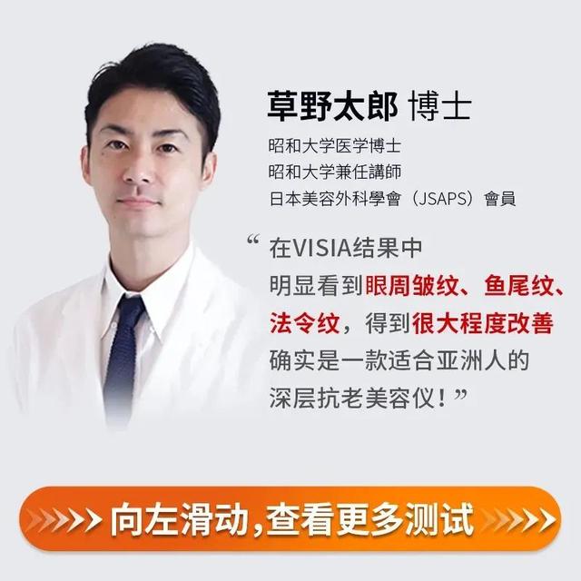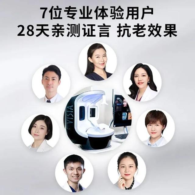雅萌同时邀请了 7 位皮肤科博士/医生进行亲测。通过皮肤科专业检测仪器 VISIA,跟踪分析 28 天的皱纹淡化效果。
